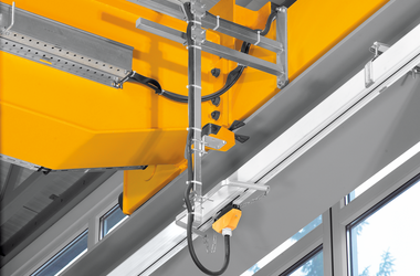 Collegamento della trave principale con viti ad alta resistenza. Ruote con cuscinetti a rulli e lubrificazione a vita. Motore di trazione con avvio e arresto morbidi. Con alimentazione in corrente continua integrata per il robusto e duraturo freno elettromeccanico. Motoriduttori completamente esenti da manutenzione. Struttura in acciaio con verniciatura monostrato in giallo giunchiglia RAL 1007, motori blu traffico RAL 5017.