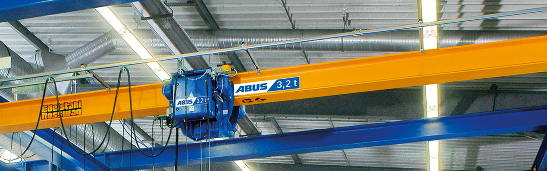 Le gru a carroponte a vie di corsa superiori ABUS offrono portate fino a 8 t e luci fino a 25 m. Sono disponibili nelle versioni DLVM ed EDL con trave in profilato laminato ed EDK con trave a scatola resistente alle torsioni. Anche per le gru a carroponte a vie di corsa superiori ABUS è disponibile un'ampia gamma di dotazioni aggiuntive.