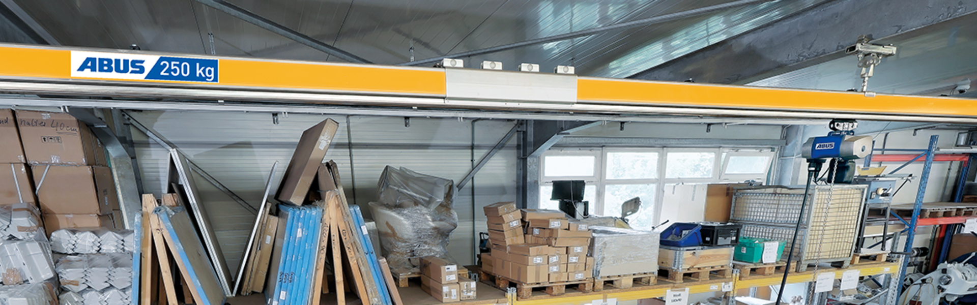 La monorotaia ESB di ABUS è specializzata nel sollevamento sul posto e nel trasporto lineare da un punto a un altro. Ampliandole con profili curvi, il dispositivo di sollevamento attraversa il capannone in base alle vostre indicazioni. In questo modo, le postazioni di lavoro possono essere collegate l'una all'altra in base alle esigenze o si possono apportare modifiche alle singole posizioni delle macchine.