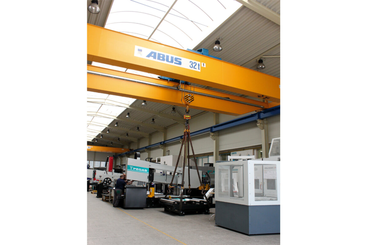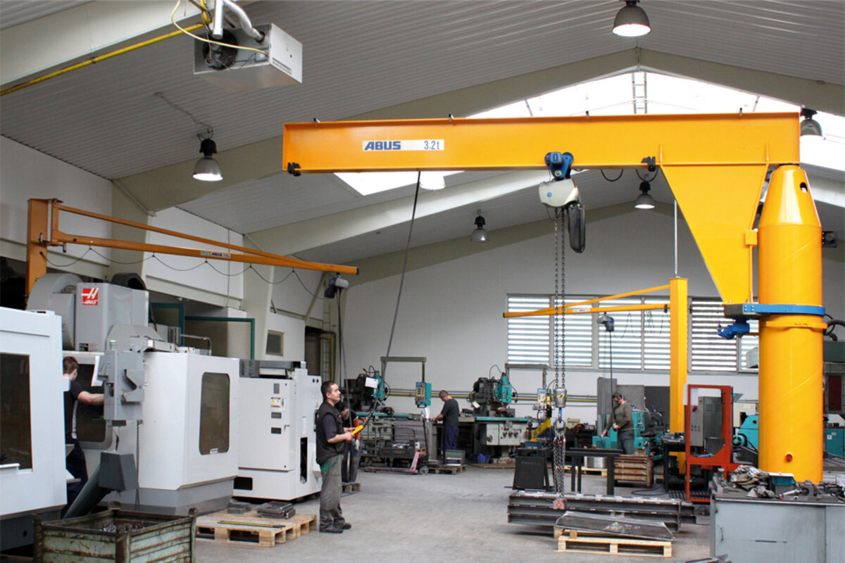 A selection of ABUS cranes at PEGAS GONDA, a manufacturer of metal saws in the Czech Republic
