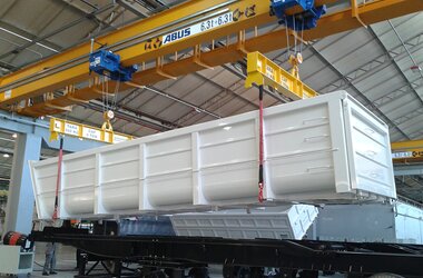 Logistics and material flow are also a key issue for Randon themselves. When Randon decided to optimise the material flow by altering the existing process sequence in their production they got in touch with the company Eidt-Ciriex (www.ciriexabus-cranes.com.br), the ABUS agent in Brazil with headquarters in Porto Alegre. Gustavo Trentin who is responsible for the analysis of engineering processes at Randon Implementos described the intended essential alterations of the production sequences thus: “In the past complete units, i.e. chassis and bodywork, were painted which required extensive covering and insulating work to be carried out. We introduced a new working area where chassis and bodywork are painted separately and built into a complete vehicle afterwards. This procedure was to increase substantially not only productivity but also the quality of the final product.” The modified production lines required also new cranes to be installed in the production areas. For over 16 years Randon had already been using ABUS crane systems with different designs and load capacities and this project too saw ABUS cranes being installed following the analysis of the transport task and consultation by Eidt-Ciriex.