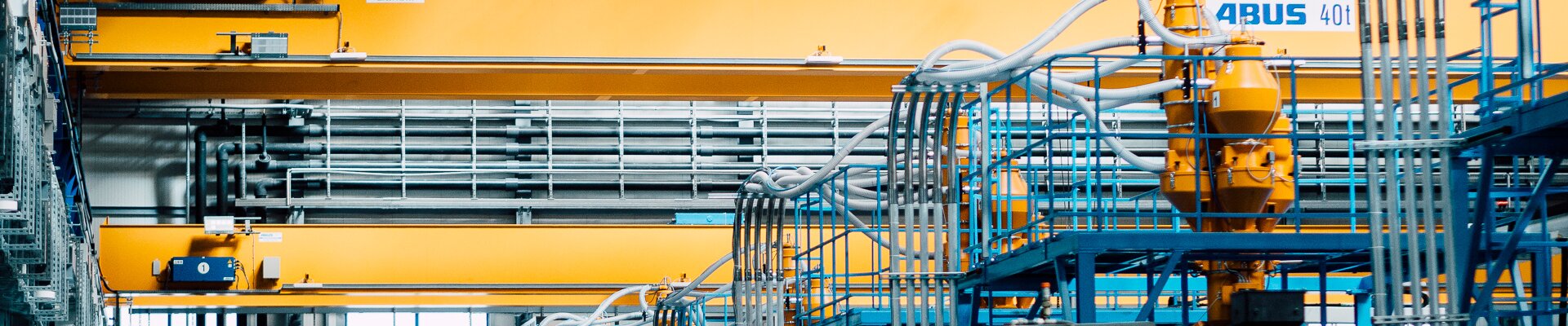 ABUS technology had been used in the production of Jelenia Plast even before the new order was placed. Jelenia Plast put particular emphasis on the reliability of hoists and thus decided to buy ABUS EOT cranes for this new investment. The newly built production plant saw three double girder EOT cranes installed: two cranes with load capacities of 10 tonnes and a further crane with 40 tonnes SWL. All three cranes share relatively large spans of 36 metres.