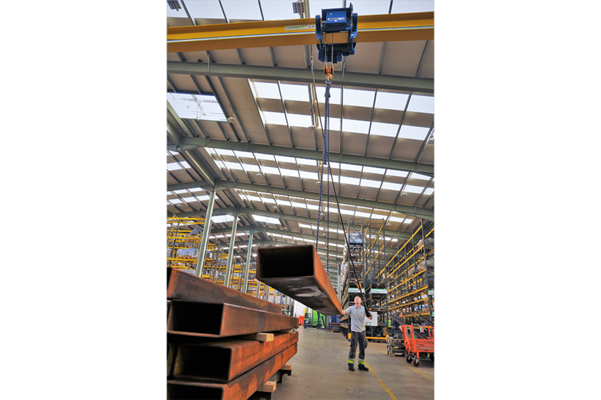 Eight of the ABUS overbraced LW wall-mounted jib cranes were also fitted to columns within the Combilift facility to provide a localised swept radius lifting solution.