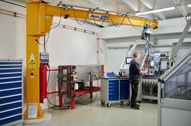 ABUS jib cranes in maintenance company for machine tools in Sweden